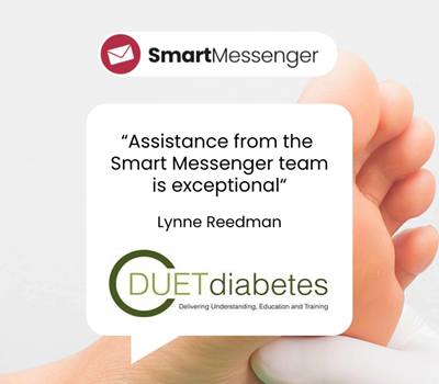 Lynne Reedman, DUET diabetes: "Smart Messenger has been essential in supporting our objective to expand the reach and impact of DUET diabetes in improving diabetes care in the UK."